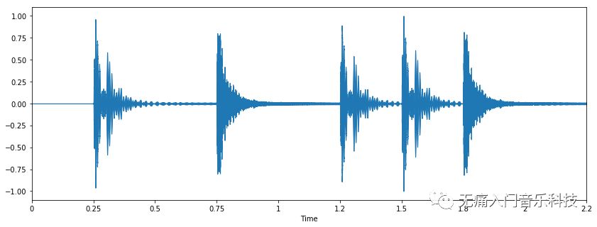 直接从字面意思上理解,过零率(zero-crossing rate)就是指波形在单位时间内的穿零次数。我们用下方的“动打动动打”音乐片段为例仔细了解下ZCR。